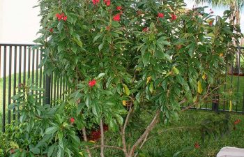 big tree with red leaves