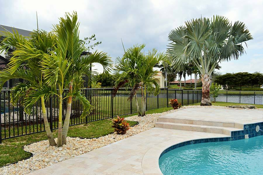 backyard swimming pool with Travertine deck